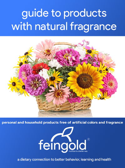 Our Guide to Products with Natural Fragrance lists products that contain natural fragrances but no synthetic (artificial) fragrance, colors, BHA, BHT, or TBHQ. The booklet is divided into Stage One and Stage Two sections, and both retail and mail order products are included. Most of these products are available in both the U.S. and Canada. We do not know if any of them are available in other countries.